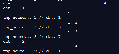 d = tmp_house - prev_house #๋ ์ง ์ฌ์ด์ ๊ฑฐ๋ฆฌ
