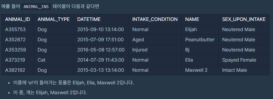 ์ฒ์์๋ ๊ทธ๋์ WHERE NAME LIKE 'EL' ์ด๋ผ๊ณ ํ์ผ๋....