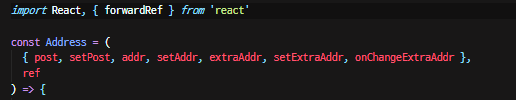 ์๋๋ฉด const Address = forwardRef( (props, ref) => {... ์ด๋ฐ ์์ผ๋ก ์์์ ๊ฐ์ธ์ค๋ ๋๋ค.