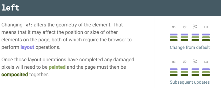 ์๋ฅผ๋ค์ด CSS์ left ์์ฑ์ ๋ณ๊ฒฝํ๋ ์ ๋๋ฉ์ด์ ์ด ์์ผ๋ฉด, ์ด๋ ์ ๋๋ฉ์ด์ ํ ํ๋ ์ ๋ง๋ค