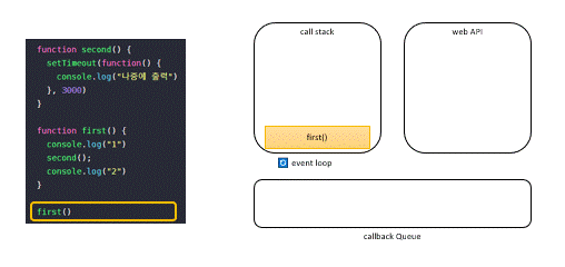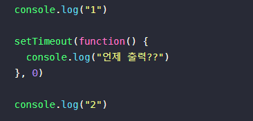 setTimeout์ ์ํด ์ฝ๋ฐฑ(console.log("์ธ์ ์ถ๋ ฅ??"))์ ํ์คํฌํ์ ์ฌ๋ผ๊ฐ ์๋ ์ํ!