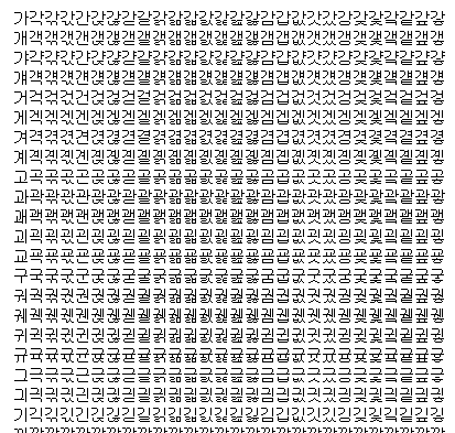 - ν΄λΉ κΈμμ μ½λλ₯Ό νκΈ°ν λ U+ (16μ§μ μ«μ)λ‘ μμ±ν¨ → κ° == U+AC00 (10μ§μ 44032)