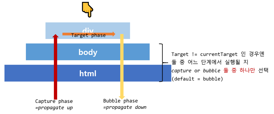 , useCapture Boolean์ผ๋ก ๋ฃ์ด์ฃผ๊ธฐ, ๋ํดํธ=false(๋ฒ๋ธ๋ง)] );